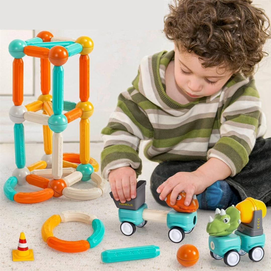 Un juguete educativo y súper divertido que estimula la creatividad mientras los niños construyen y juegan con simpáticos dinosaurios. Sus piezas magnéticas permiten armar y desarmar fácilmente, fomentando el aprendizaje STEM y la imaginación sin límites.
